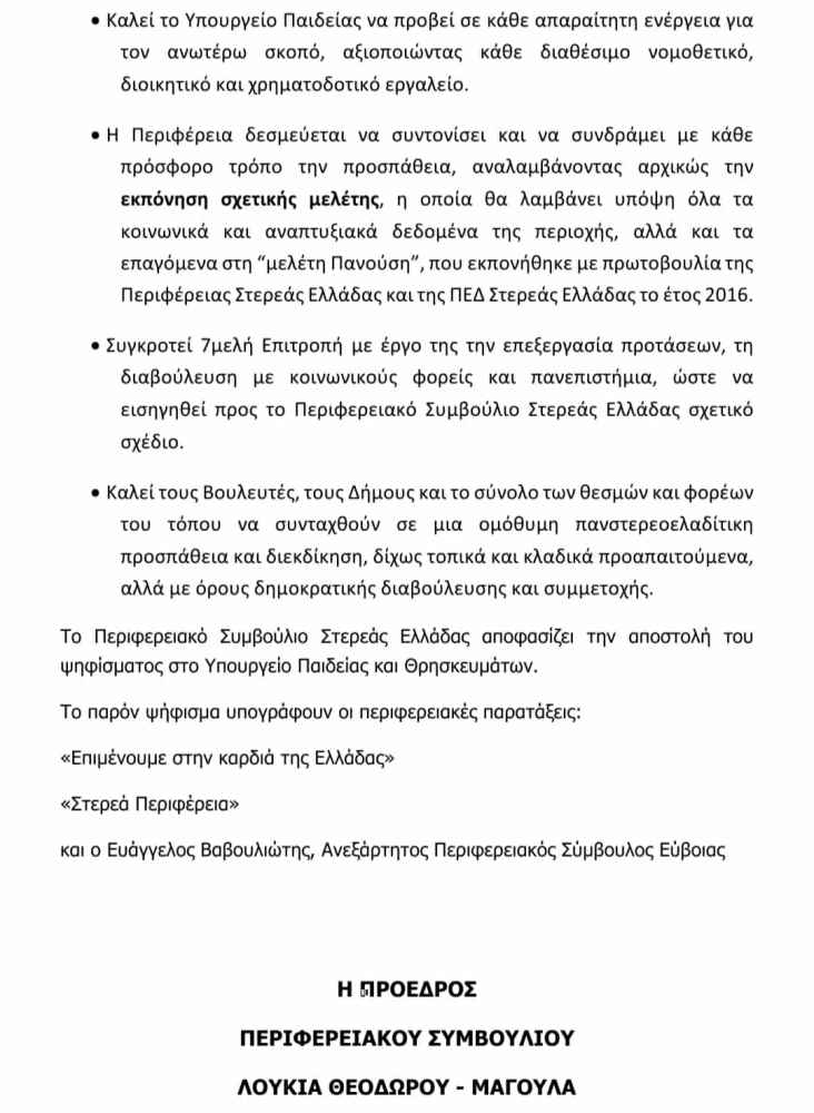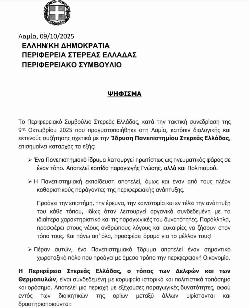 Περιφέρεια Στερεάς Ελλάδας: Επαναφέρεται θεσμικά και δυναμικά το αίτημα για την ίδρυση Πανεπιστημίου Στερεάς Ελλάδας