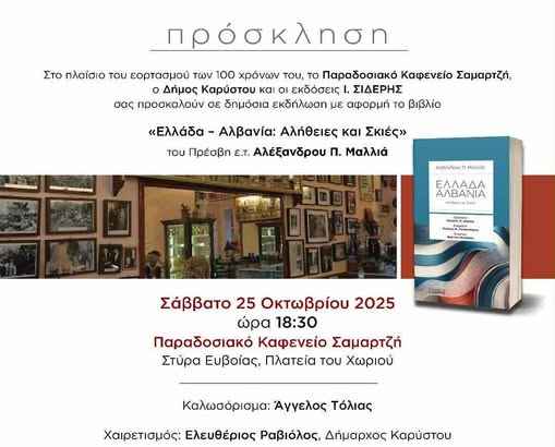 #ΑλβανίαΔήμος ΚαρύστουΕλλάδαΕύβοιακαφενείοΛευτέρης ΡαβιόλοςΝ. ΣτύραΠαρουσίαση βιβλίου