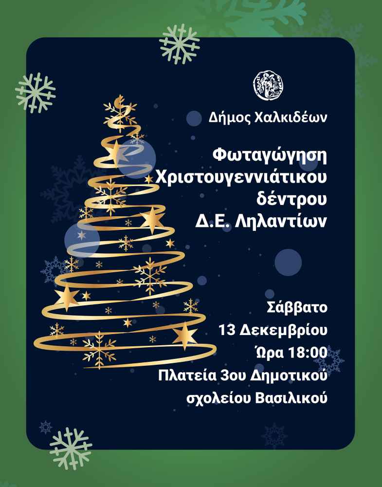 Σάββατο 13 Δεκεμβρίου | Ώρα 18:00 | Φωταγώγηση Χριστουγεννιάτικου δέντρου Δ.Ε Ληλαντίων – πλατεία 3ου Δημοτικού σχολείου Βασιλικού