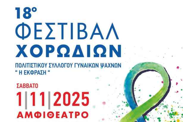 Τα Ψαχνά ετοιμάζονται να γεμίσουν φωνές, μελωδίες και συναισθήματα στο 18ο Φεστιβάλ Χορωδιών που διοργανώνει ο Πολιτιστικός Σύλλογος Γυναικών Ψαχνών «Η Έκφραση». Η εκδήλωση θα πραγματοποιηθεί το Σάββατο 1 Νοεμβρίου 2025, στις 6:00 μ.μ., στο Αμφιθέατρο του ΕΚΠΑ στα Ψαχνά (πρώην ΤΕΙ Στερεάς Ελλάδας), με ελεύθερη είσοδο για το κοινό.