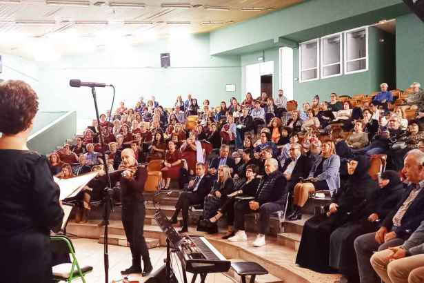 Συγκινητική στιγμή της βραδιάς αποτέλεσε η παρουσία της μοναχής Πορφυρίας και της αδελφής Μαγδαληνής από την Ιερά Μονή Παναγίας Περιβλέπτου Πολιτικών, οι οποίες παρακολούθησαν τη συναυλία, αποσπώντας θερμές εκδηλώσεις σεβασμού από το κοινό.