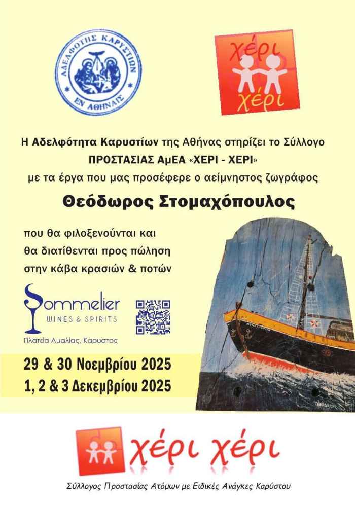#Sommelier Wines & SpiritsΑδελφότητα Καρυστίων ΑθηνώναλληλεγγύηΑμεΑέκθεση ζωγραφικήςΘεόδωρος ΣτομαχόπουλοςΚάρυστοςπολιτισμόςΧέρι-Χέρι