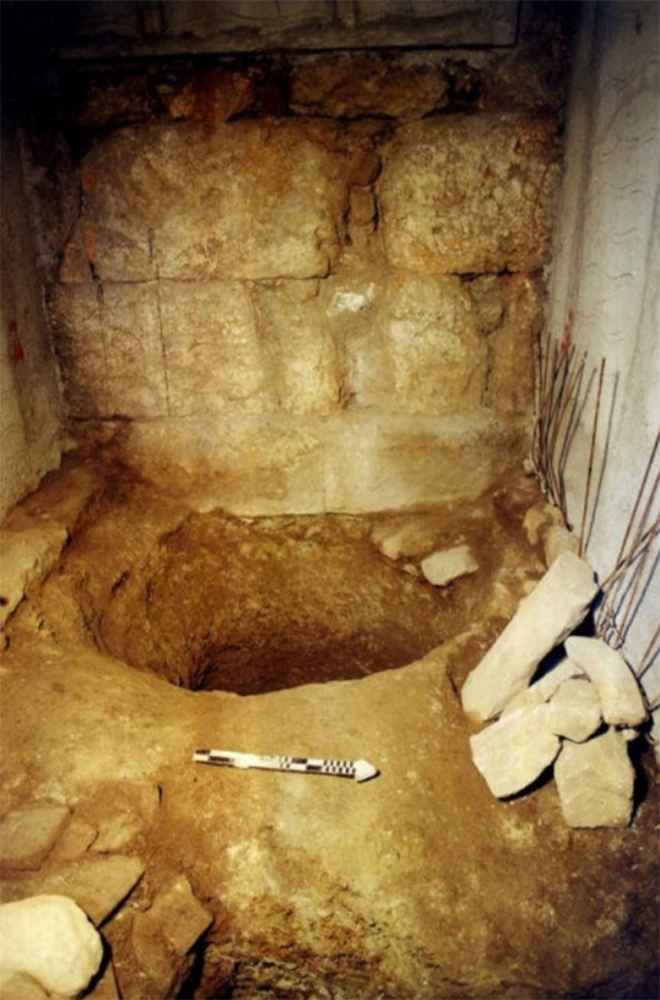 Στη δυτική πλευρά του αύλειου χώρου βρέθηκε φρεατοδεξαμενή, η οποία περιέπεσε σε αχρηστία και γέμισε με μεγάλη ποσότητα κεραμικής απόθεσης (κυρίως, αγγεία συμποσίων) του τελευταίου τετάρτου του 4ου αιώνα π.Χ.