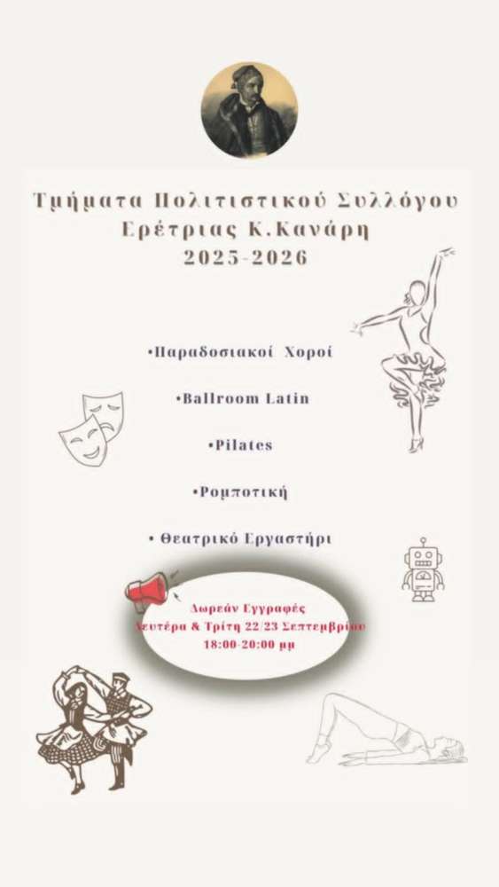 #LatinPilatesΕρέτριαΘεατρικό Εργαστήρινέα τμήματαΠαραδοσιακοί Χοροίπολιτισμός ΕύβοιαςΠολιτιστικός Σύλλογος «Κ. Κανάρης»Ρομποτική