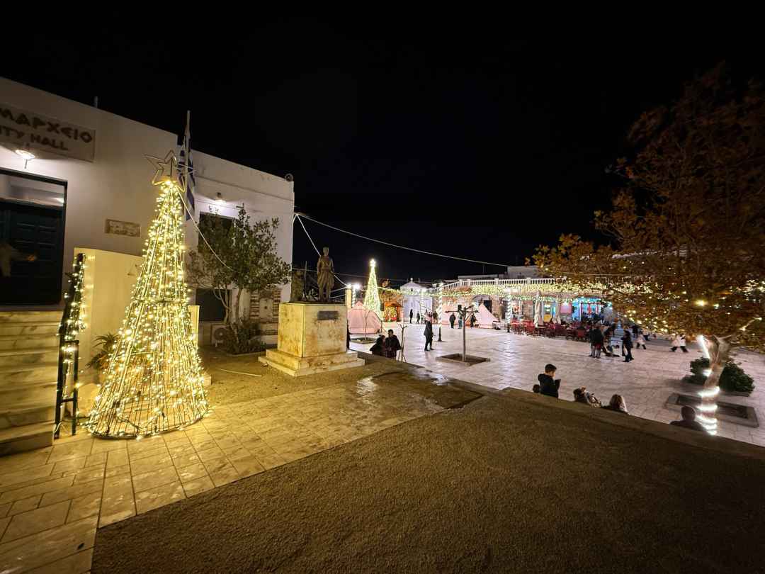 Ακολούθησε ένας σύντομος χαιρετισμός από τον Δήμαρχο, Κυριάκο Αντωνόπουλο, και η μεγάλη αντίστροφη μέτρηση που ένωσε για μερικά δευτερόλεπτα όλη την πλατεία σε μία φωνή. Και οταν τα φώτα άναψαν….. Ένα κύμα ενθουσιασμού και θαλπωρής απλώθηκε παντού. Το Δημαρχείο μεταμορφώθηκε σε ένα τεράστιο χριστουγεννιάτικο δώρο, ενώ πάνω στην ταράτσα του έλαμπε το έλκηθρο του Άγιου Βασίλη με τους τάρανδους, σαν να είχε μόλις προσγειωθεί από τον ουρανό της Σκύρου.