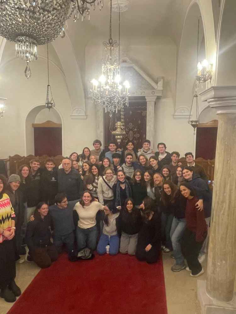 Σήμερα, 7 Δεκεμβρίου 2025, η Συναγωγή της Εβραϊκής Κοινότητας Χαλκίδας —της αρχαιότερης εν λειτουργία Κοινότητας στην Ευρώπη— υποδέχθηκε μια ιδιαίτερη επίσκεψη. Τριάντα οκτώ φοιτητές και δύο καθηγητές από το Εβραϊκό Πανεπιστήμιο Kivunim της Νέας Υόρκης βρέθηκαν στη Χαλκίδα για να γνωρίσουν από κοντά την ιστορία, την παράδοση και τη διαχρονική παρουσία της Κοινότητας στην πόλη.