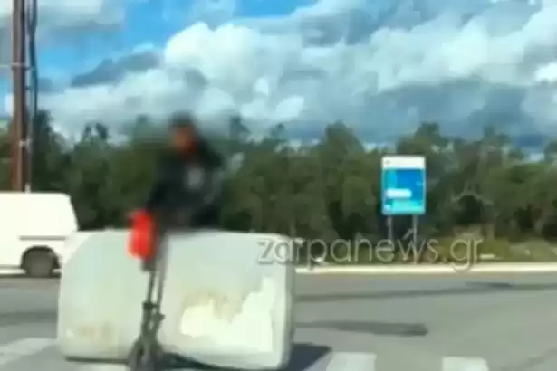 Ένα απίστευτο περιστατικό έλαβε χώρα όταν ένας οδηγός σκέφτηκε να μεταφέρει ένα στρώμα με το πατίνι του κινούμενος σε κεντρικό δρόμο με φανάρια στα Χανιά.