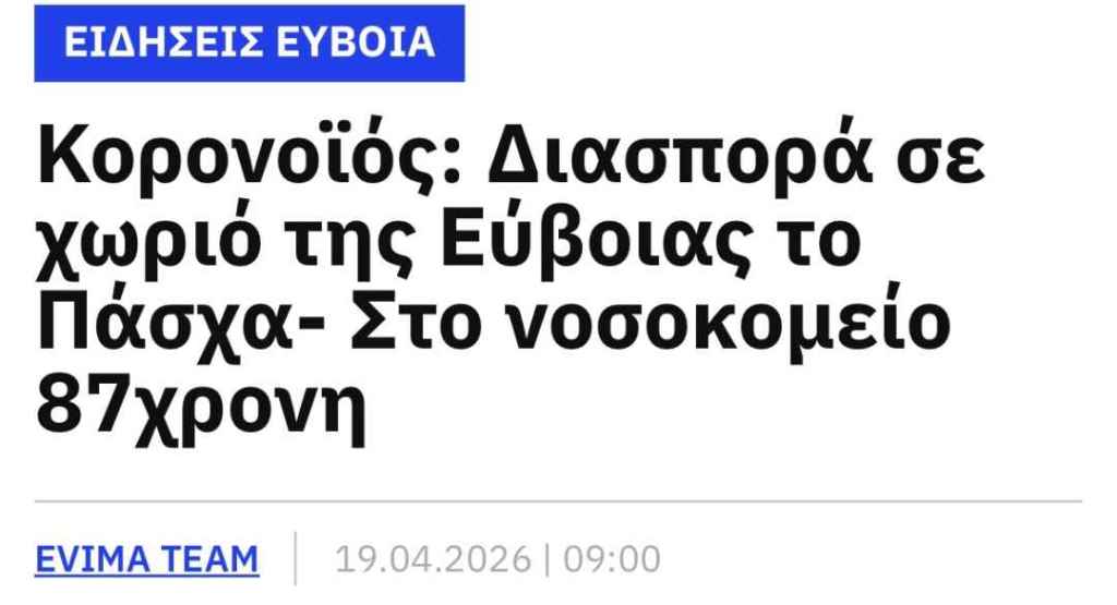 >>> Εύβοια: Η… εξάπλωση κορονοϊού σε μεγάλο χωριό Δήμου- Η αλήθεια και η “τρομολαγνεία” από το evima και την Μ. Ρέτσα-Τι πραγματικά συμβαίνει-Η γυναίκα που εισήχθη στην ΜΕΘ