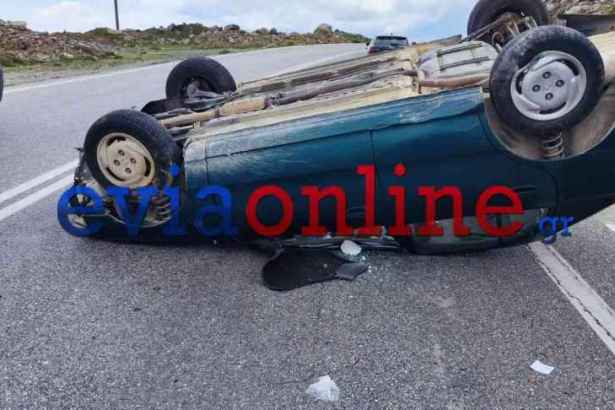 Εύβοια-Τροχαίο: Οι πρώτες εικόνες από την ανατροπή του αυτοκινήτου-Ένας Τραυματίας- (Όλες οι πληροφορίες)