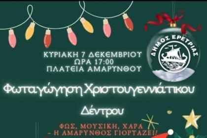 Δήμος Ερέτριας: Φωτίζει το Χριστουγεννιάτικο δέντρο στην Αμάρυνθο