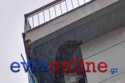 Χαλκίδα-Κακοκαιρία Byron: Παραλίγο τραγωδία-Έπεσαν κομμάτια από μπαλκόνι πολυκατοικίας στον εμπορικό δρόμο της Αβάντων την ώρα που περνούσε άνδρας