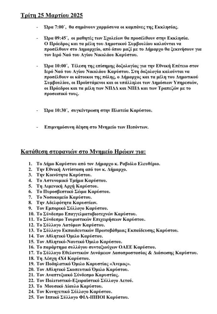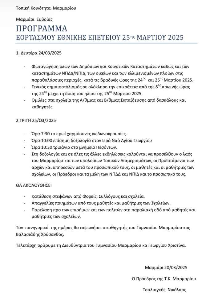 #Δήμος ΚαρύστουΕθνική Επέτειος 25ης ΜαρτίουΕύβοιαΜαρμάριΝέα Στύραπαρέλαση 25ης Μαρτίουπρόγραμμα εκδηλώσεων