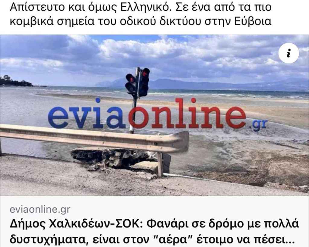 Δεν πέρασε ούτε ένα εικοσιτετράωρο από την ανάδειξη του θέματος από το evia online για το κεκλιμένο φανάρι που προσομοίαζε στον πύργο της Πίζας και τους κινδύνους για τους οδηγούς σε δρόμο όπου έχουν σημειωθεί δεκάδες δυστυχώς τροχαία δυστυχώς και ξαφνικά σήμερα μεσημέρι Πέμπτης το Φανάρι στάθηκε όρθιο. Ποιος το έβαλε;