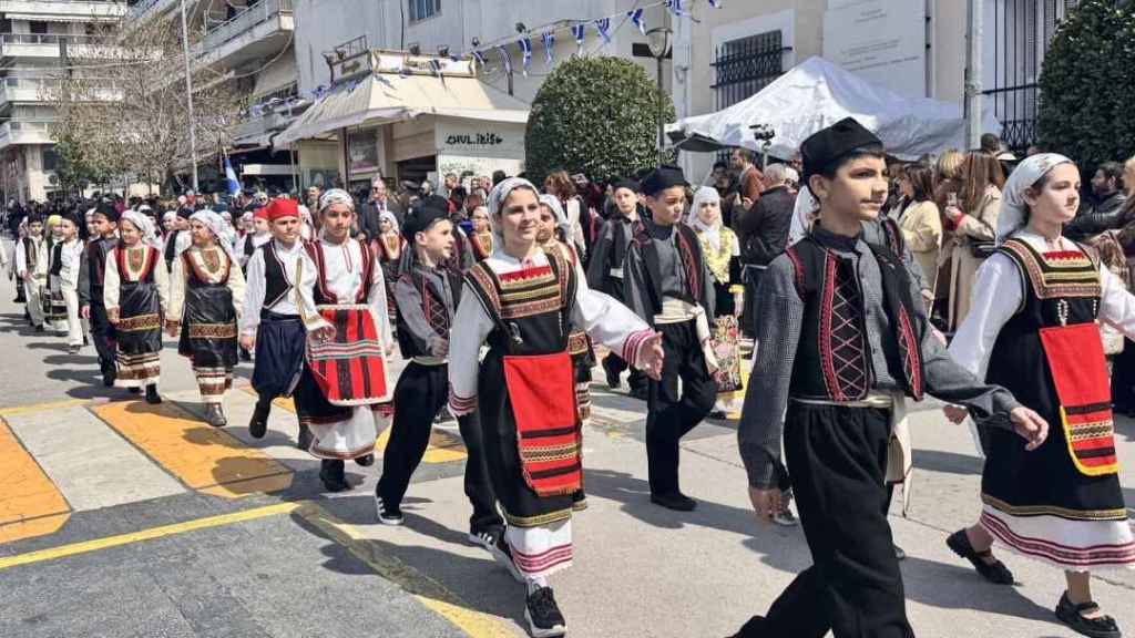 Παρουσία πλήθους κόσμου που καταχειροκροτεί τους συμμετέχοντες διεξάγεται η μαθητική παρέλαση για την 25η Μαρτίου, μια ημέρα αφιερωμένη στη μνήμη της Επανάστασης του 1821 και στην ελευθερία της Ελλάδας.