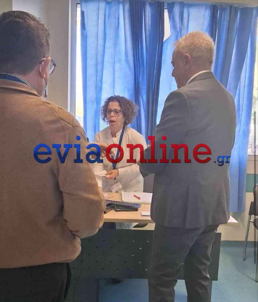 Σύμφωνα με αποκλειστικές πληροφορίες του evia online ο Διοικητής της 5ης ΥΠΕ Φώτης Σερέτης εμφανίστηκε αιφνιδιαστικά σήμερα το μεσημέρι Τρίτη 24 Φεβρουαρίου στο Νοσοκομείο Χαλκίδας και συγκεκριμένα στο Τμήμα Επειγόντων Περιστατικών. Ο λόγος όπως αποδείχθηκε ήταν ο έλεγχος της διαδικασία υλοποίησης, της εφαρμογής του βραχιολιού στους ασθενείς.