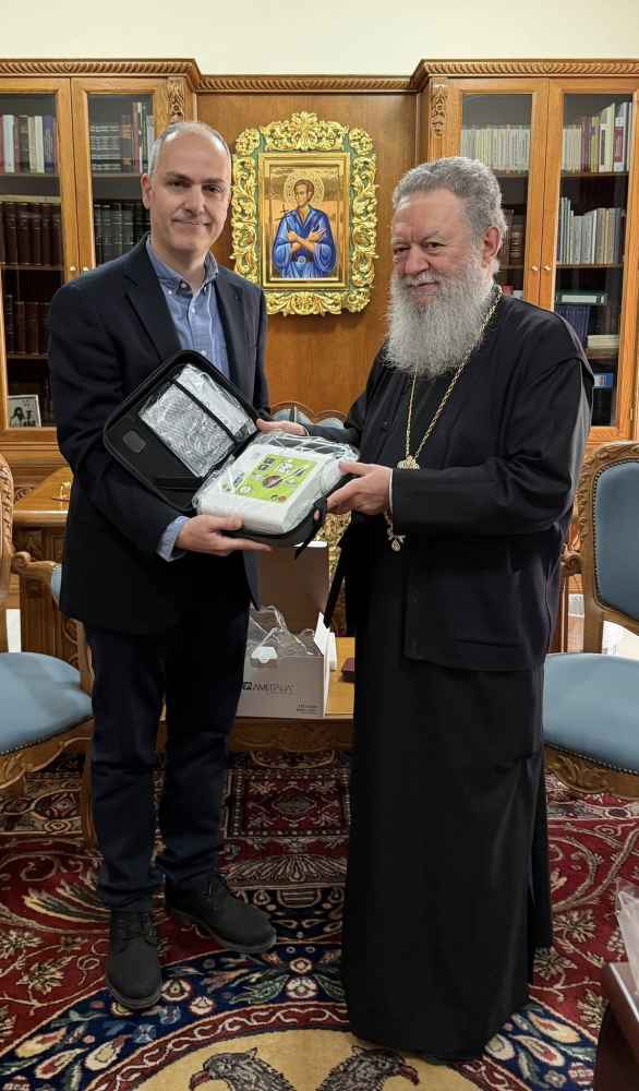 Ο πρώτος απινιδωτής παραδόθηκε στην Ιερά Μητρόπολη Χαλκίδας Ιστιαίας και Βορείων Σποράδων και στον Σεβασμιώτατο Μητροπολίτη Χαλκίδας Χρυσόστομο, προκειμένου να καλυφθούν ανάγκες πρόληψης και προστασίας στις παιδικές εκκλησιαστικές κατασκηνώσεις στις Ροβιές.