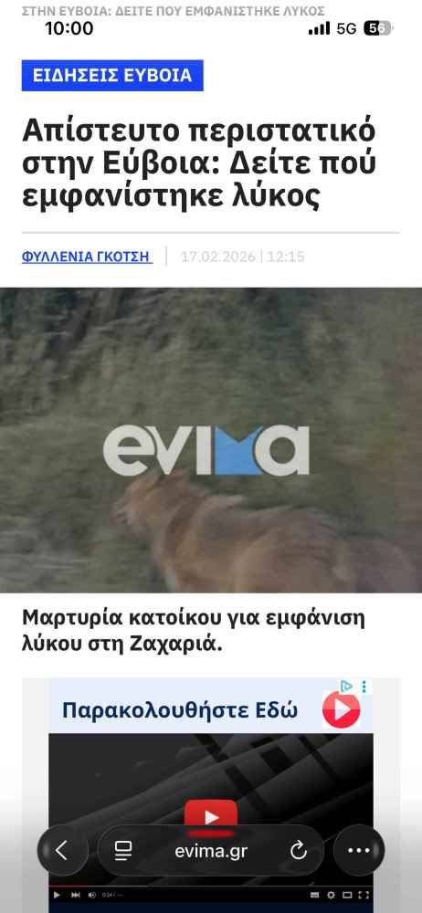 Με αφορμή τη δημοσιοποίηση οπτικοακουστικού υλικού που παρουσιάζει ένα άγριο ζώο να κινείται σε οδικό δίκτυο της Νότιας Εύβοιας, κρίνεται απαραίτητο να αποκατασταθεί η αλήθεια προς αποφυγή παραπληροφόρησης.