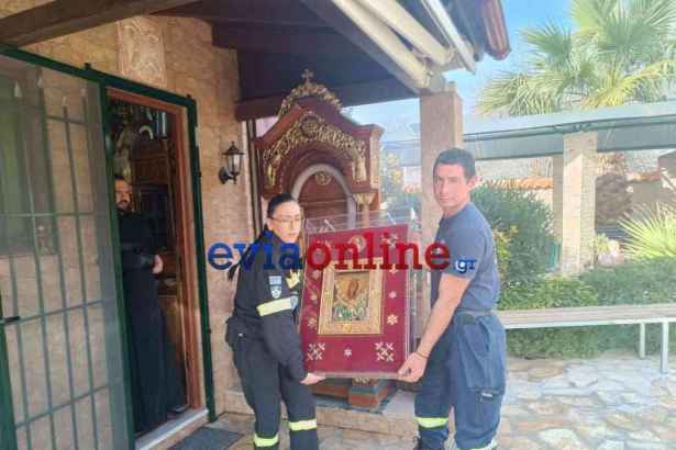 Η μεταφορά της Ιεράς Εικόνας έγινε με ασφάλεια από εθελοντές του Εθελοντικού Σώματος Δασοπροστασίας Διάσωσης Ευβοίας, οι οποίοι συνόδευσαν με σεβασμό και αίσθημα ευθύνης το ιερό κειμήλιο της χριστιανοσύνης, που χρονολογείται από τον 4ο αιώνα μ.Χ., πίσω στον φυσικό του χώρο.