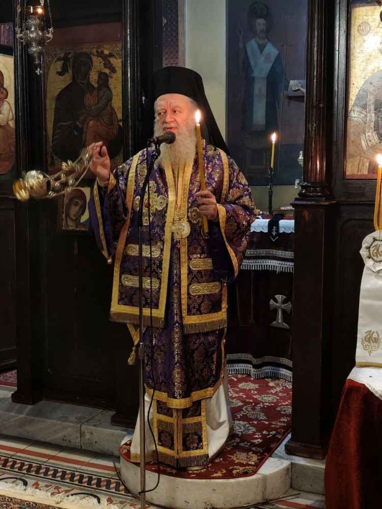 Κηρύσσοντας τον θείο λόγο ο Σεβασμιώτατος, ανέφερε ότι το άγιο ζεύγος, Χρύσανθος και Δαρεία, έζησαν έχοντας ως οδοδείκτη τους τον Χριστό. Αποτελούν πρότυπα για μας τους χριστιανούς και ειδικότερα σε όσους έχει δοθεί το χάρισμα από τον Θεό να δημιουργήσουν οικογένεια. Έζησαν τους πρώτους αιώνες του χριστιανισμού, στην περίοδο των διωγμών. Ο Χρύσανθος ήταν γιος επιφανούς ειδωλολάτρη της Αλεξάνδρειας, κατηχήθηκε όμως στη χριστιανική πίστη και βαπτίσθηκε χριστιανός. Όταν ο πατέρας του πληροφορήθηκε την πράξη του, προσπάθησε μάταια με διάφορους τρόπους να τον μεταπείσει. Τελευταία του ελπίδα υπήρξε ο γάμος του με μία Ελληνίδα ειδωλολάτρισσα, την Αθηναία Δαρεία. Όμως ο Χρύσανθος είχε τα δικά του σχέδια και μετά από πολλές συζητήσεις και κατηχήσεις, κατάφερε να πείσει τη Δαρεία ότι η πραγματική πίστη και αλήθεια ευρίσκεται κοντά στο Χριστό. Έκτοτε, ο Χρύσανθος και η Δαρεία επιδόθηκαν με θαυμαστό ζήλο στη διάδοση του Λόγου του Θεού. Γι’ αυτό συνελήφθησαν, υπέστησαν φρικτά βασανιστήρια και όταν οι βασανιστές τους είδαν ότι δεν μπορούν να κάμψουν το φρόνημά τους, τούς έθαψαν ζωντανούς σε βόθρο, αλλά τα διαμάντια δεν χάνουν την λάμψη και την αξία τους όπου κι αν ριχτούν, γι’ αυτό και μέχρι σήμερα οι δύο άγιοι λάμπουν στην Εκκλησία του Χριστού.