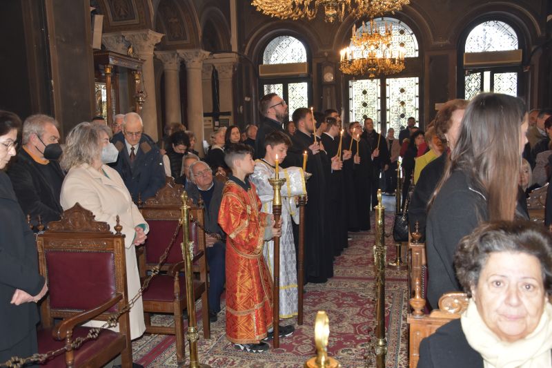Επίσης, αναγνώσθηκε η Εγκύκλιο 3104 της Ιεράς Συνόδου της Εκκλησίας της Ελλάδος «Περί των Ιερατικών Κλήσεων» και στη λατρευτική σύναξη συμμετείχαν πολλοί Αναγνώστες και υποψήφιοι Κληρικοί της τοπικής μας Εκκλησίας προσκεκλημένοι του Σεβασμιωτάτου Ποιμενάρχου μας, ο οποίος, προ του «Δι’ ευχών», ευχήθηκε στους εκκλησιασθέντες πιστούς να ενδυναμώνονται από τον Τίμιο Σταυρό, για τη συνέχεια της Νηστείας, ανέφερε τη μέριμνα της τοπικής μας Εκκλησίας υπέρ των υποψηφίων Κληρικών και επεσήμανε ότι η μέριμνα αυτή είναι και πρέπει να είναι έργο όλων των μελών της Εκκλησίας.