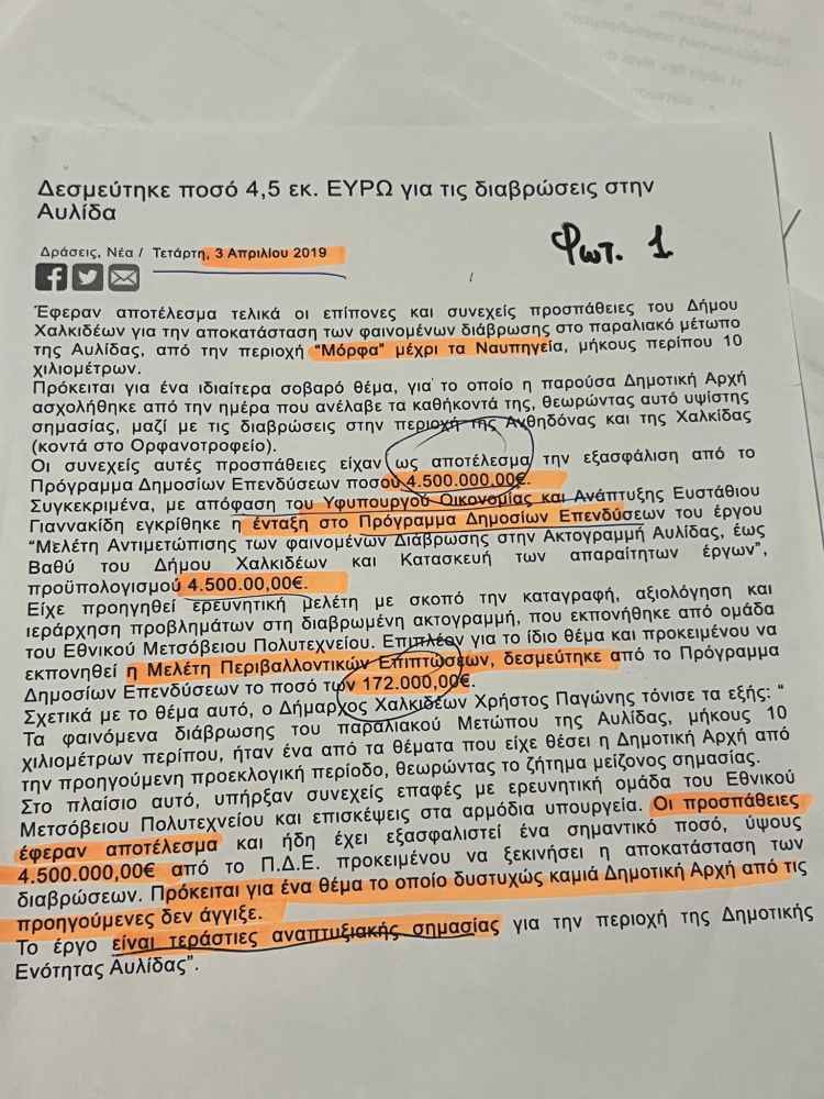 ▪️Είναι ψέμα ότι υπήρχε δεσμευμένη πίστωση 4,5 εκατ. ευρώ για την ανάπλαση του παραλιακού μετώπου της Αυλίδας από την εποχή του δημάρχου Χρήστου Παγώνη;