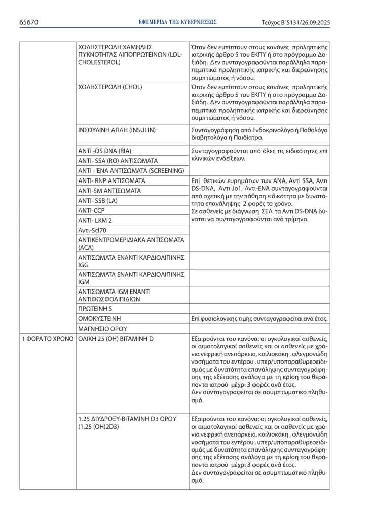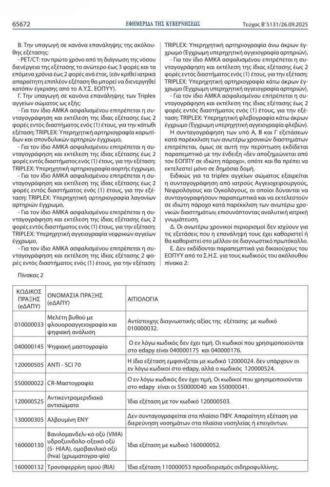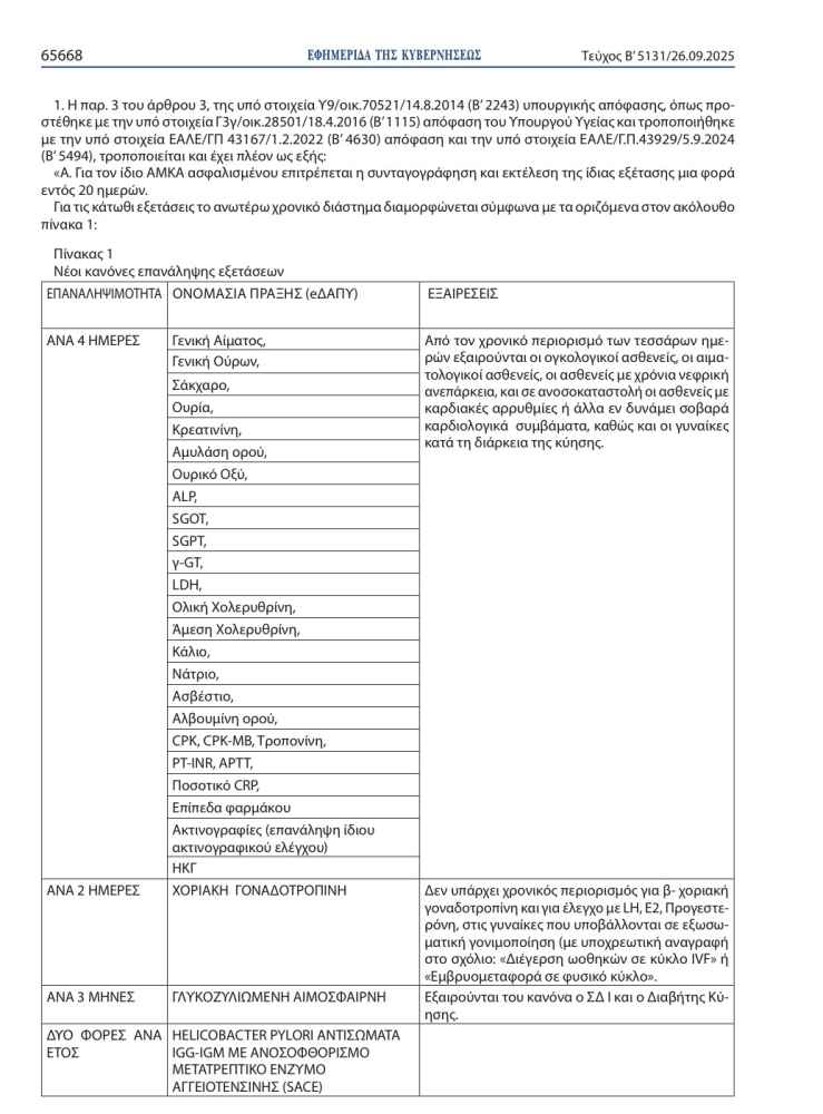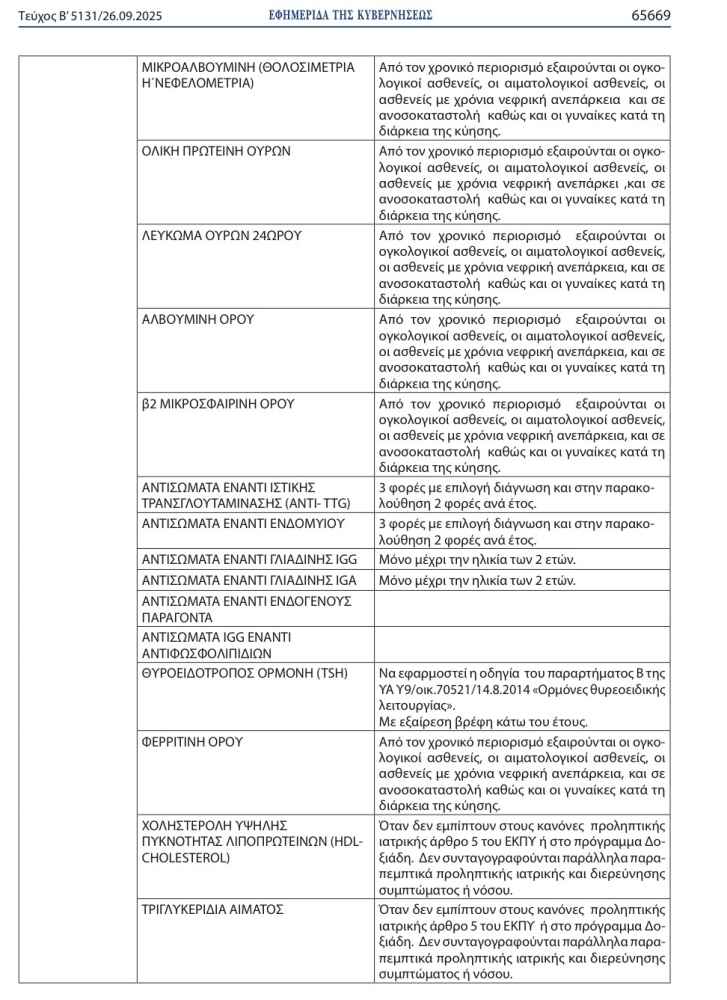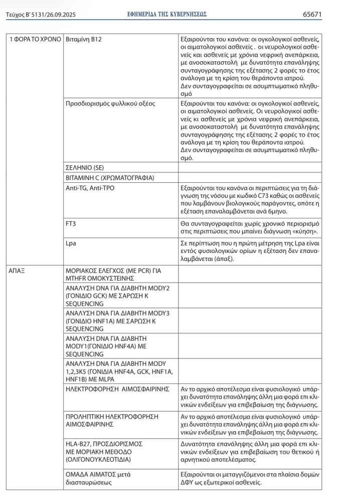 >>> Προσοχή: Τι αλλάζει στις διαγνωστικές εξετάσεις, για τους ασφαλισμένους του ΕΟΠΥΥ-Αναλυτικοί πίνακες