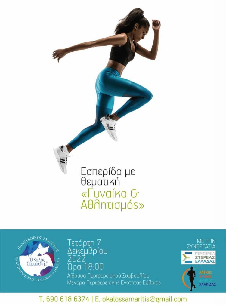 >>> Χαλκίδα: Εσπερίδα με θέμα “Γυναίκα και Αθλητισμός” από τον Σύλλογο “Ο Καλός Σαμαρείτης”