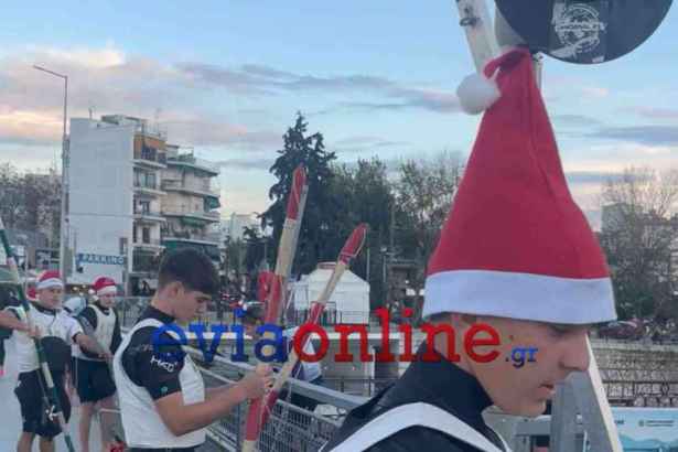 Μια ξεχωριστή και άκρως γιορτινή εικόνα από τη Χαλκίδα! Οι αθλητές του Ναυτικού Ομίλου Χαλκίδας με σκούφο Αγιοβασίλη έκαναν προπόνηση στο κανόε καγιάκ, στέλνοντας μήνυμα χαράς, αθλητισμού και γιορτινού πνεύματος!