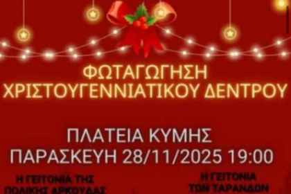 Εύβοια: Νωρίς φέτος η φωταγώγηση του Χριστουγεννιάτικου Δένδρου στην Κύμη