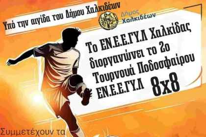 Το 2ο τουρνουά ποδοσφαίρου 8x8 διοργανώνει το ΕΝ.Ε.Ε.ΓΥ.Λ Χαλκίδας, την Τρίτη 28…