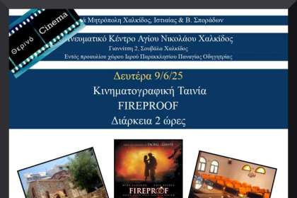 Χαλκίδα: Θερινή Κινηματογραφική Βραδιά στη Σουβάλα – Προβολή της ταινίας Fireproof στο Πνευματικό Κέντρο Αγίου Νικολάου
