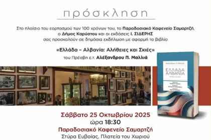 Δήμος Καρύστου: Βιβλιοπαρουσίαση στα Στύρα – “Ελλάδα – Αλβανία, Αλήθειες και Σκιές”-Χαιρετισμός από τον Λ. Ραβιόλο