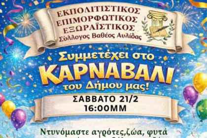 Ο Εκπολιτιστικός, Επιμορφωτικός και Εξωραϊστικός Σύλλογος Βαθέος Αυλίδας, με σταθερή δράση από…