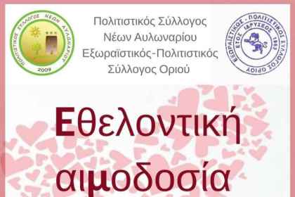 Εύβοια: Μήνυμα προσφοράς από την τοπική κοινωνία μέσα από εθελοντική αιμοδοσία-Σύλλογοι Αυλωναρίου και Ορίου