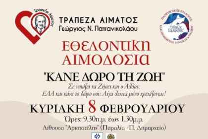 Μια ανοιχτή δράση προσφοράς ζωής προγραμματίζεται στο Αυλωνάρι την Κυριακή 25 Ιανουαρίου…
