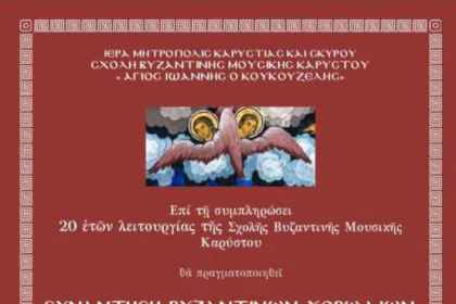 Η Σχολή Βυζαντινής Μουσικής Καρύστου «Άγιος Ιωάννης ο Κουκουζέλης», της Ιεράς Μητροπόλεως…