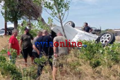 Εύβοια – Τροχαίο: ΙΧ έφερε τούμπα στον αέρα και κατέληξε σε μάντρα